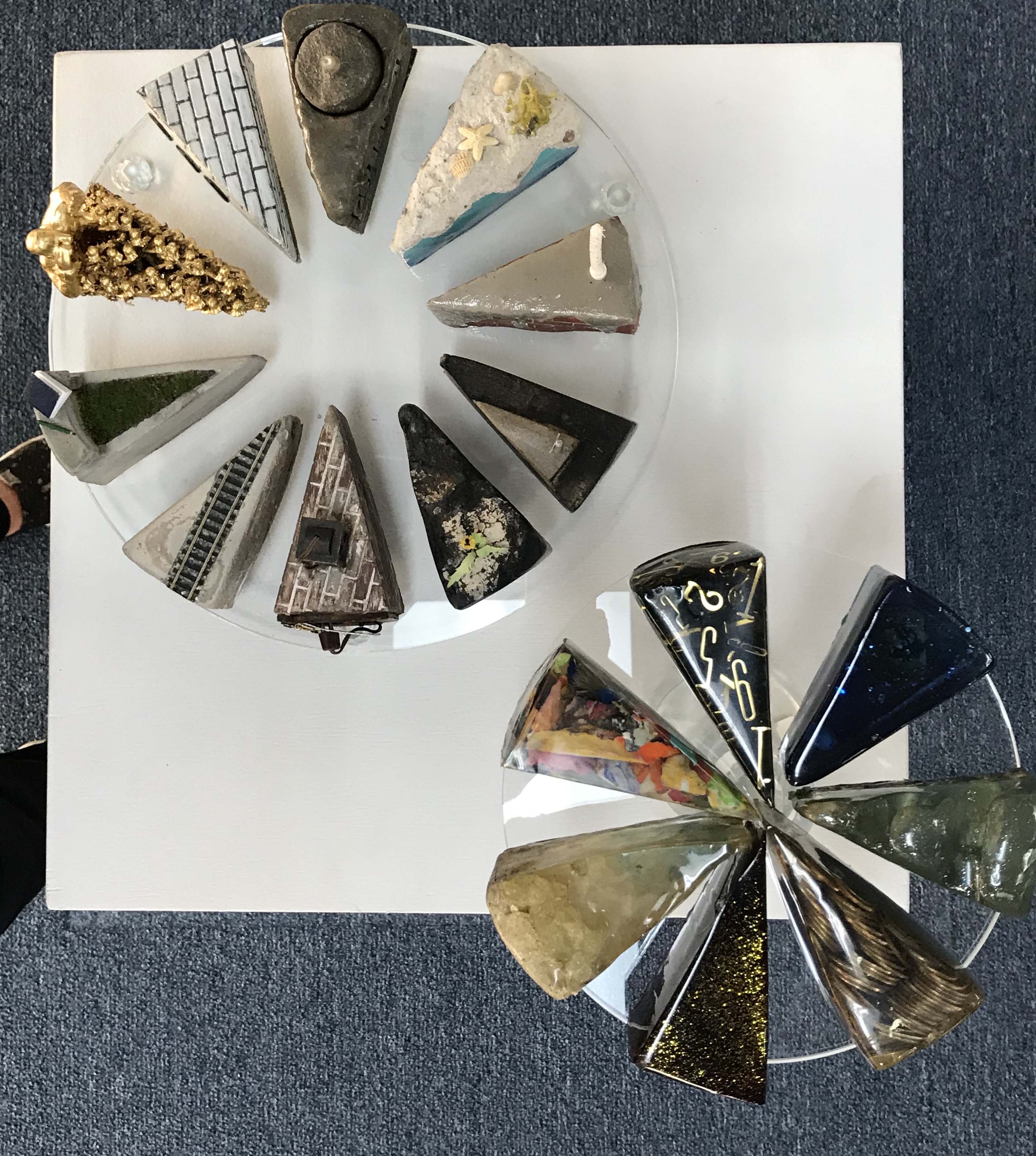 exhibited one etched “Reflections on Beauty” (mirror with laminated wood )/ one History of Us” (‘Cultural Totem’) & One “Color My World” (cake from the ‘Slice of Life’ series
