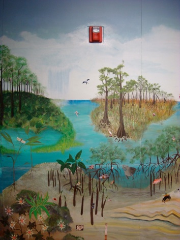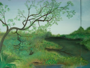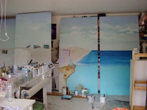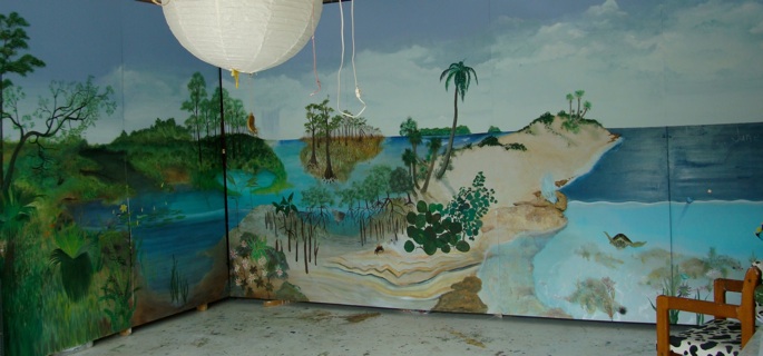 This is a 24 foot wide by 8 foot high mural done on 6 wood panels
